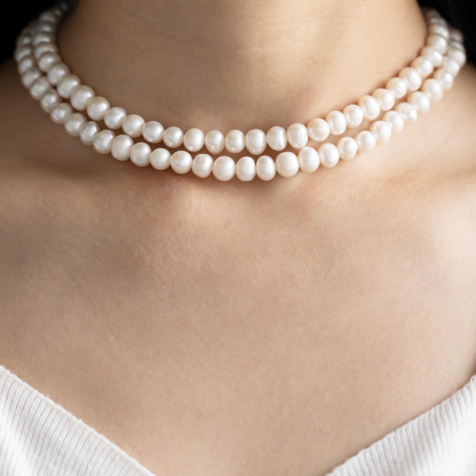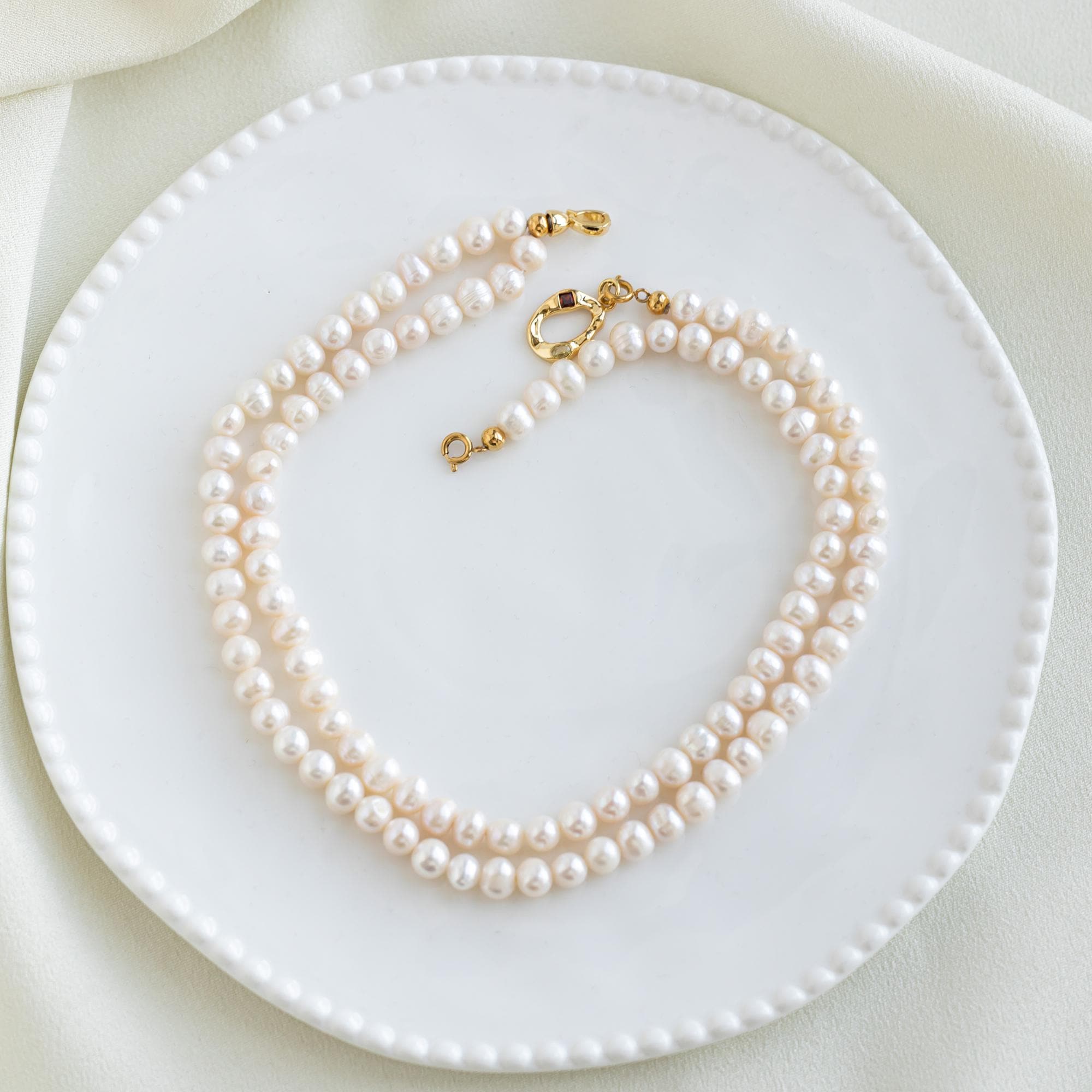 This double-layer freshwater pearl necklace is the ideal choice for brides on their wedding day. Whether paired with a wedding gown or a formal dress, this necklace enhances the bride’s elegance and sophistication, serving as the crowning jewel of her wedding ensemble. Each pearl symbolizes the bride’s beautiful aspirations and blessings for the future.